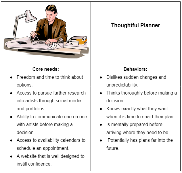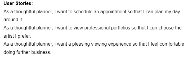 There are various groups of users that would visit the website. This ranges from users that are researching tattoo studios to those interested in getting a new tattoo.