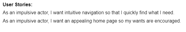 Next, archetype personas and user stories were built based on the target audience. These were separated by personality type rather than experience to create a more accurate representation of those that would visit the website. A few user stories were made to present scenarios that’d bring each archetype persona to the site. This helps better understand expectations and paths they may take.
