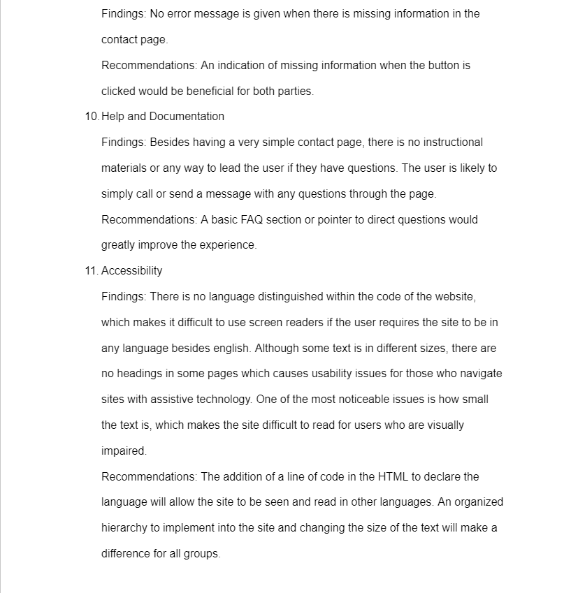 The project was first defined and put through a heuristic evaluation along with an accessibility audit. The creative brief gave a detailed description of the objectives, timelines, and additional information. Meanwhile, the heuristic evaluation and accessibility audit identifies issues found within the website and offers different solutions as shown.