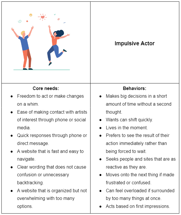 These archetype personas were created by researching the target audience and personal experience.