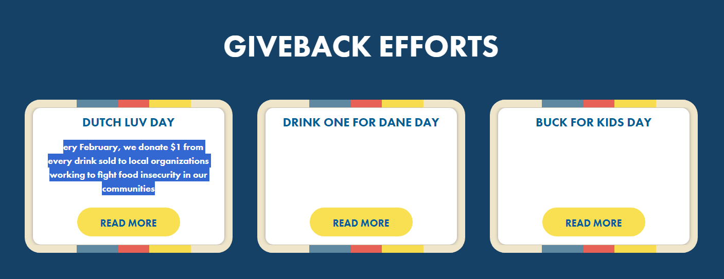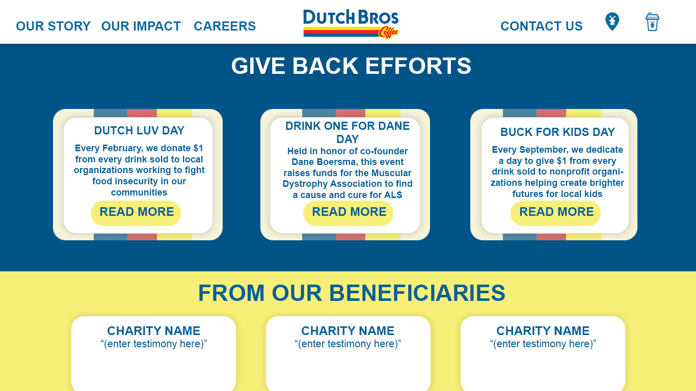 User testing and teamwork were essential to finding issues with the previously mentioned pages within the Dutch Bros website. After, each member interpreted the gathered information in their own way and came to individual conclusions. The redesigns described focused on visuals and simplicity to make the user experience smoother and more appealing.